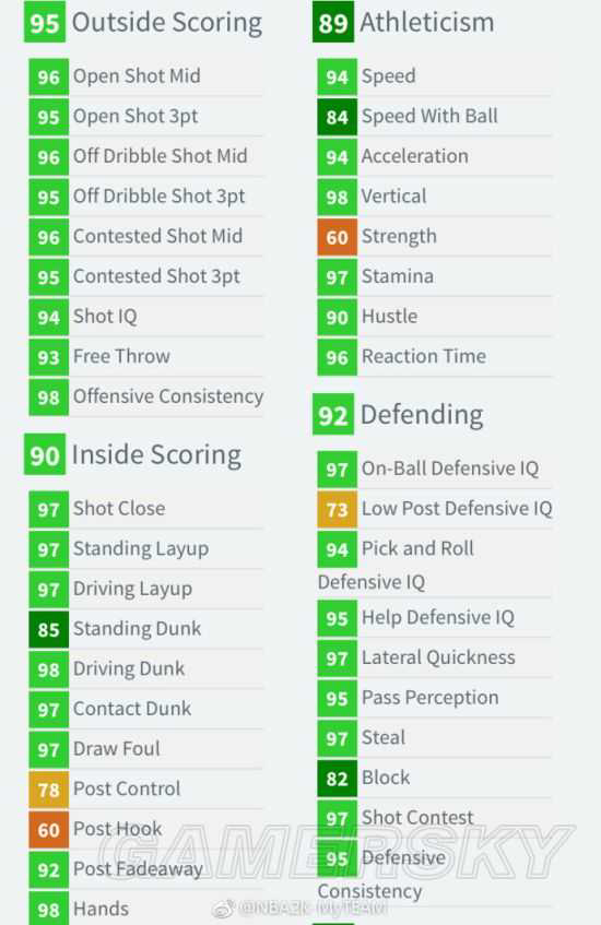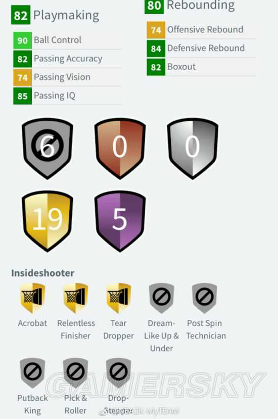 印城将军,全能战士。投篮顶级,防守顶级,扣篮顶级,就连控球也给到了90,84的带球速度稍慢需要穿钻鞋弥补。自带5个紫徽章:隔扣达人、持球防守精英、接球投篮、无限射程和远距离神射,含紫量极高。