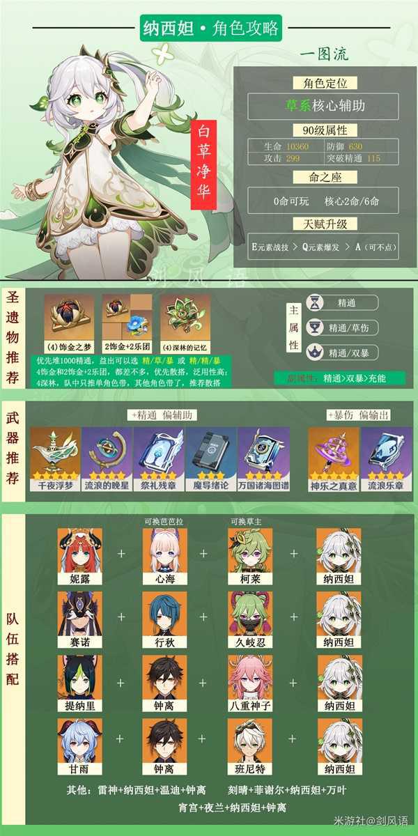 《原神》中的草神纳西妲可以说是3.2上半的T0角色了,在配队方面也有很多思路,下面请看由“剑风语”带来的《原神》草神纳西妲阵容搭配解析,希望对大家有用。