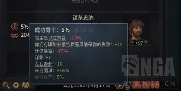 老有人谋害我继承人,虽然概率不高但是心里也不爽,结果查看暴露的密谋的成功率发现透露的信息有点多: