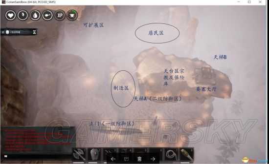 最后一张,本据点地理位置。配合论坛上那张彩图,可见此位置与各种刷怪点、资源点、中枢诅咒区的活动半径范围,大约均在3-5分钟可达。