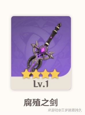 腐蚀之剑是之前雪山活动送的,适合全堆攻击圣遗物的而且想下深渊的玩家,有充能有510的白字,也是属于很适合七七的一把四星。