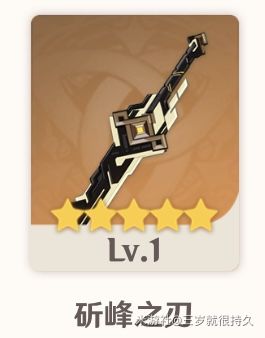 斫峰之刃是七七的毕业武器,也是追求奶量的玩家最适合的武器,有着高额的攻击加成,下深渊的话可以换成充能沙再去带斫峰再合适不过了。