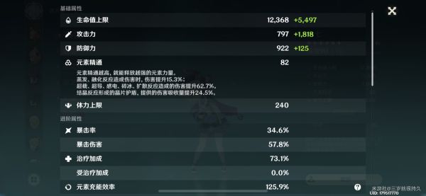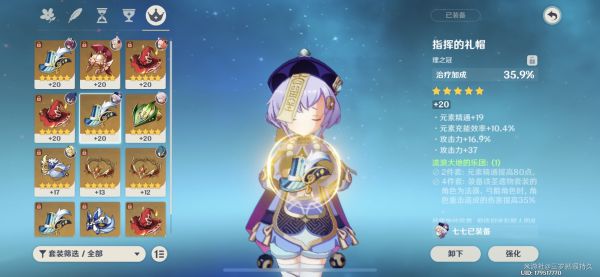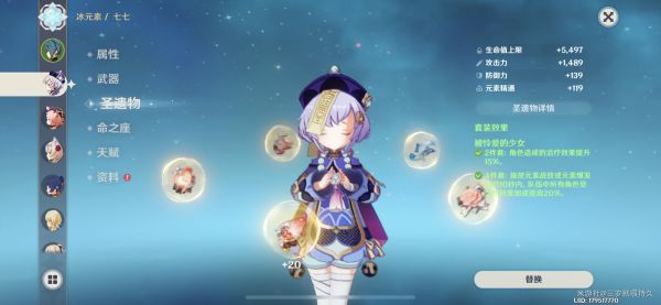 附上我自己七七的圣遗物武器练度和奶量截图: