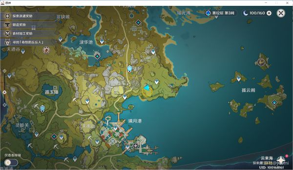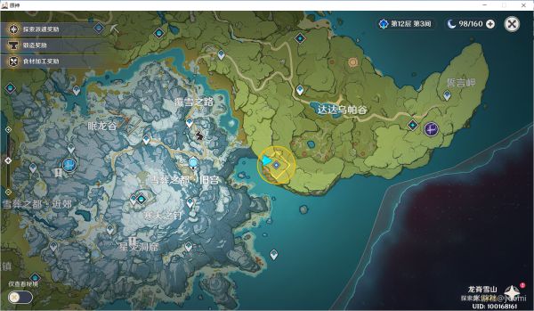 根据第二只丘丘人给的提示,对照手册我们可以知道是将时间调整至12-18点间,大伟丘位置如下图箭头所示: