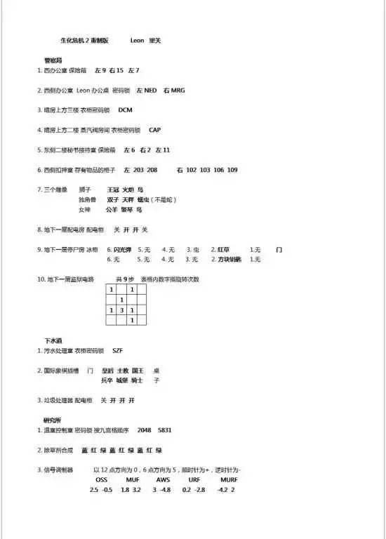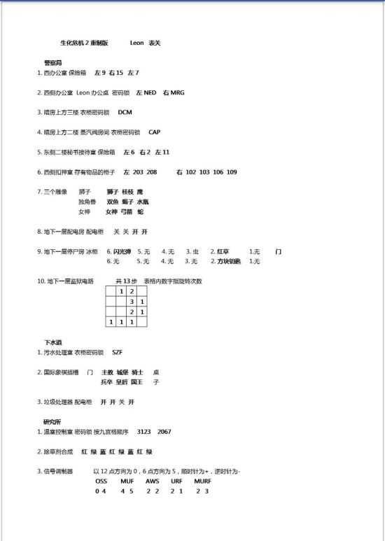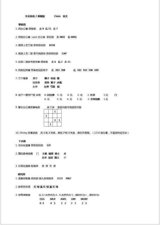 《生化危机2重制版》中两个主角分别有两条线,表里关的谜题是不同的,有些玩家不知道谜题怎么解,所以小编带来了《生化危机2重制版》全谜题答案图解,解不开谜题的玩家来看看吧。