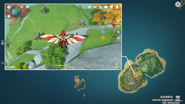 注意图片中的相对位置,不要看错了,下图中玩家站在崖边,面向东北方向(即看向传送点方向)