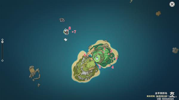 之后雷灵就会开始它的“本职工作”,就像我们平时在稻妻一样,一路追着雷灵去往终点就可以,雷灵移动轨迹如下图所示(从1开始按标注顺序一路移动到8):