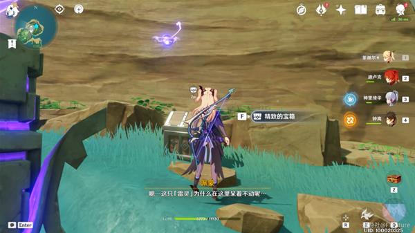 当上面三种元素方碑解谜全部完成之后,用来指引轨迹的雷灵就可以触碰送回去了。回到左边浮光山石岛上的雷灵处,靠近雷灵触碰。