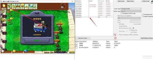 然后我们返回游戏搜索,再把游戏暂停下来,搜索变动的数值