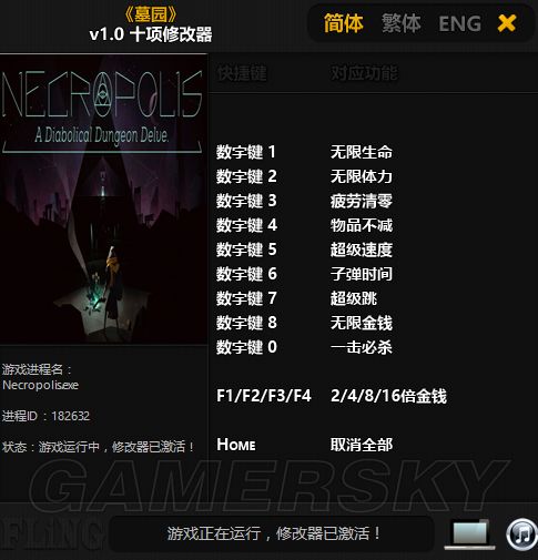 简体、繁体、English,可以切换语言(切换语言后修改器将把该语言设置为默认语言)