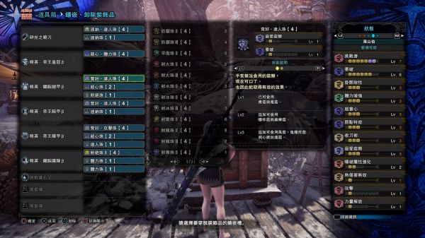 PS:目前版本太刀依然很强,很飘逸,但是容易暴毙。虽然登龙修复了,但是还是有不少人容易打不中,配装是在达人艺的基础之上修改在输出不低的情况下,提高了生存率和使用的舒适度。