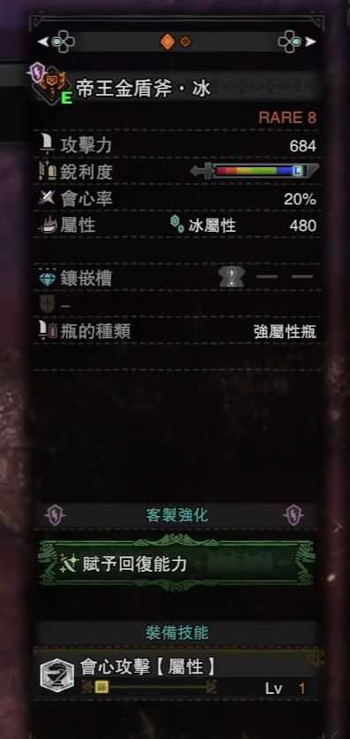 相信这几天大家已经对超模的G冰盾了解很多了,480的恐怖数据完全是碾压群怪,这个不再赘述。个人认为到了G位也许也不会再有更强的冰属性盾数据(可能物理会高一点点)