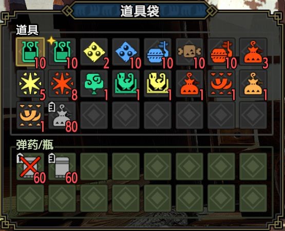 背包里面只要携带LV1和LV3散弹即可,3级火药调和总计300发,如果实在不够也可以回归球回去取