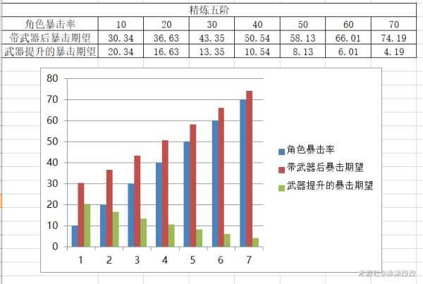 这把武器精炼五阶过后每次能提升14%的暴击,于是我再计算了精炼五阶过后的数据: