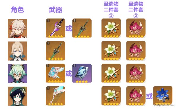 角色的武器和圣遗物选择: