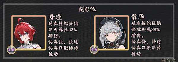 注:丹瑾与散华相比,二者的普攻加成和湮灭伤害加成属于一个加成乘区,总结就是散华加成要比丹瑾多,不过考虑到不少玩家手里,散华就业比较忙,也可以牺牲一些加伤,选择丹瑾就业。