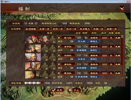 这里说第一个游戏技巧,行军速度,神速和骑兵是可以提高在地图上的行军速度的,张飞一定会是军团长,他没有神速,所以要配一个陈到给他