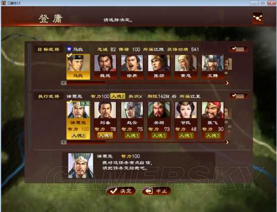 这次人品不好,登陆魏延失败,但是可以拿马良,那么去笼络魏延