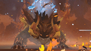 技能描述:若陀龙王顶着自己泛有冰光的犄角向旅行者顶去。