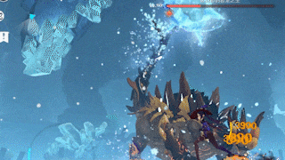 技能描述:若陀龙王甩动自己聚集了冰元素的尾巴向旅行者甩去。同时生成一些小冰炸弹。