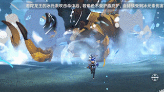 前言:当若陀龙王血量再次减少到一个定点的时候触发第三阶段。机理讲解:当旅行者被若陀龙王的冰属性技能击中时,身上会被标记“冰”字。当旅行者被标记时,若没有被护盾庇护,将会持续受到冰元素伤害。