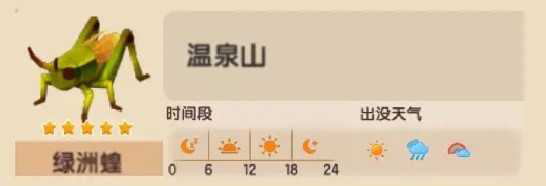 《心动小镇》中各种昆虫的出没时间和地点有所不同,想要知道绿洲蝗在哪里能够捕捉的玩家请看下面“吱大王”带来的《心动小镇》绿洲蝗捕捉位置说明,希望能够帮助大家。