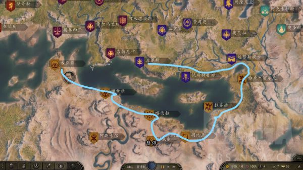 我个人的路线是这样,没有招大胡子,因为达努斯提卡有一个侦察更高的,然后去古亚兹招到了医生,前后花费大概1周的赶路时间。