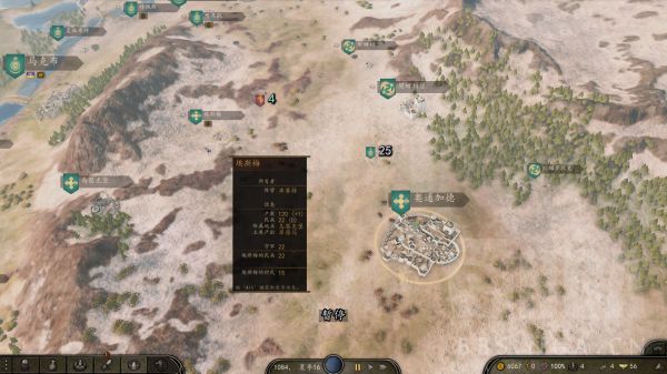 之后一段时间的流程就是每天在平原上剿匪(一定要坐镇指挥),如果有的村民卖黏土,毛皮之类的特产也建议买下来,拿到外围城镇甚至是南帝国去会有丰厚的利润(黏土11收购,库隆尼亚22卖出),当资金不足,或者是劫匪刷新速度慢的时候可以去跑一趟卖了再回来继续练兵。
