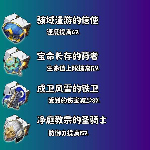 除开信使2件套增加自身速度,其他三个遗器都是为了增加佩拉的生存能力,如果没有这些遗器也不用特意去刷,对于佩拉能不能用而言,只要主属性对的上就可以了。