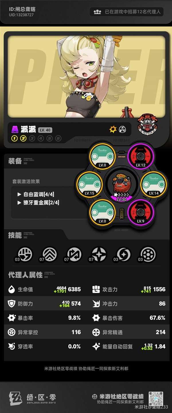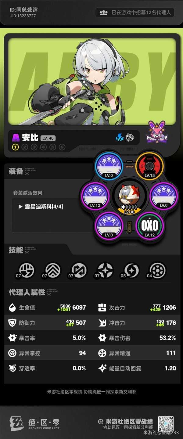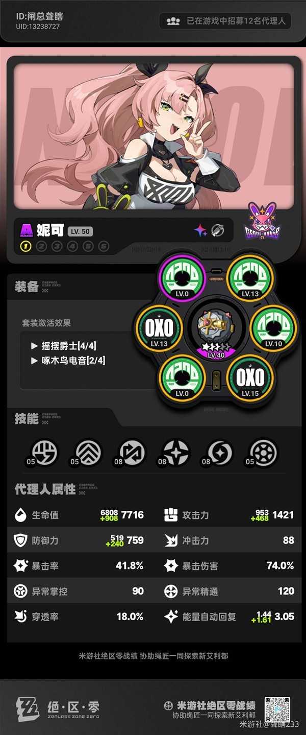 这几天总是见有人拿别的角色拉踩猫又,把原神拉踩角色那一套搬来绝区零了属于是。先上防卫战图以及面板,以防拉踩(妮可打17时候爆伤要低20)