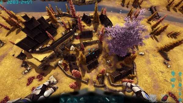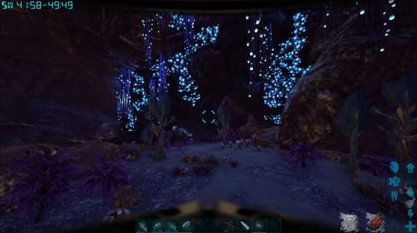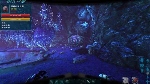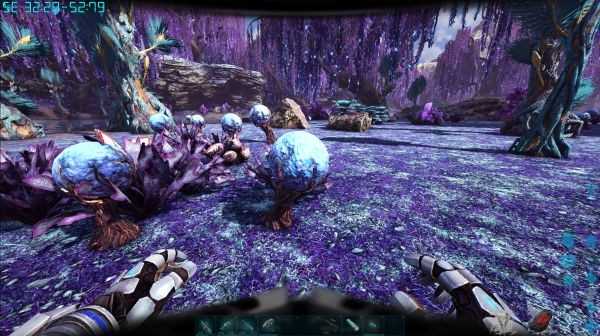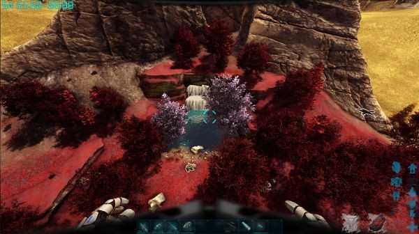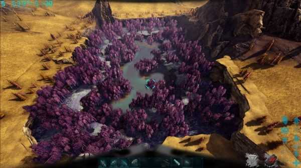 我们先看到了一个非常突兀的 紫色的树 然后我们跑过去 或者召唤代步的工具龙 飞行的就不用从低温仓扔出来了