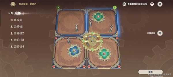 交换完之后,一次在1号柱放中齿轮,4号柱放大齿轮,2号柱放中齿轮,即可完成挑战。