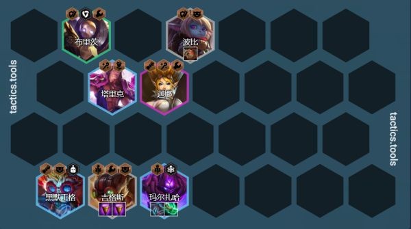 开局优先拿女神泪>腰带,女神泪可以给吉格斯,先做出圣杯和鬼书这两个装备。前期围绕着3约德尔体系打造阵容,3约德尔+2保镖/2极客/2黑魔都是非常不错的阵容。