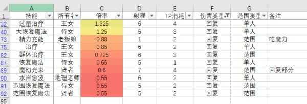 特别是回复技能,我是拿伤害公式套的,得出了一些非常不整的数值,仅供参考。