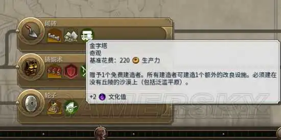 首都周围有沙漠的话,第一时间科技可以点出金字塔。然后建造者就能多挖一片森林了,这个玩意越早建越好,可以省下政策的建设者加强,非常的划算呀~