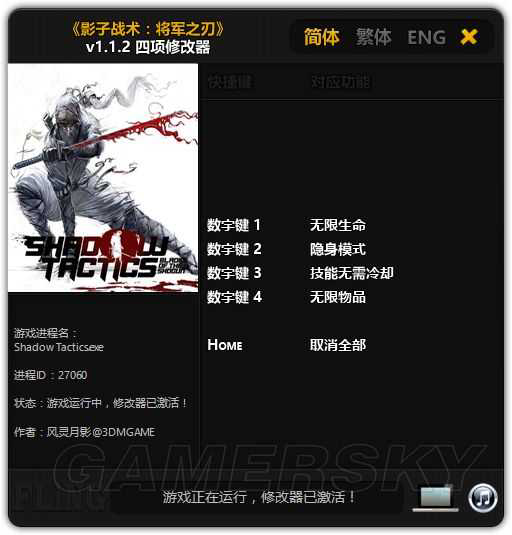 各位玩家如果在《影子战术将军之刃》中遇到困难,下面小编给大家带来的是《影子战术将军之刃》修改器及使用方法,快跟小编一起来看看吧。