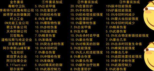 《全境封锁2》游戏中金色装备数量还是很多的,当然天赋、属性与套装加成也有所差异,相信很多玩家对此还不了解,废话不多说,一起来看下文吧。
