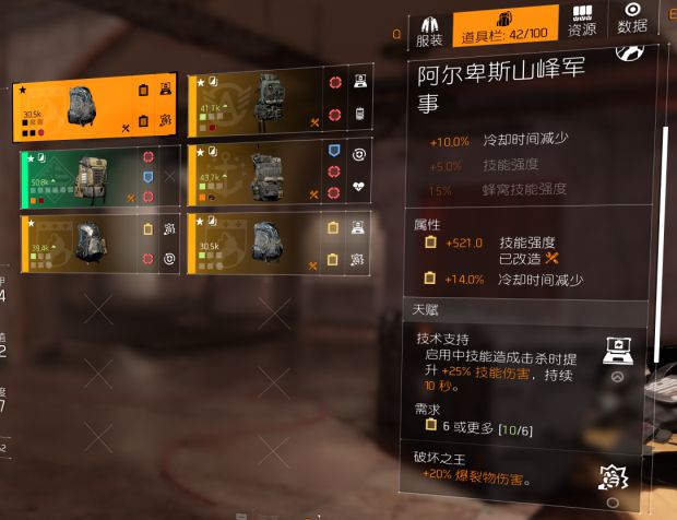 背包必备属性技术支持和爆炸伤,其他天赋背包可以直接分解。技术支持基本做到全程覆盖。