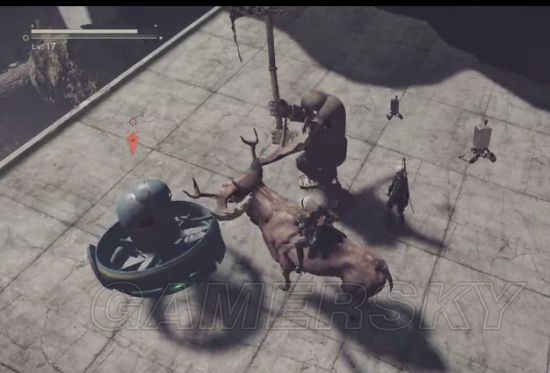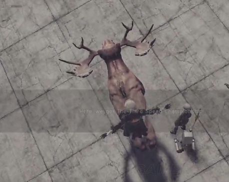 成功卡这个BUG的话2B站在鹿上面等一下后2B就会鹿上面而且在终点,也就是对话完以后我们就骑着鹿在终点了,最好先走出这个终点圈: