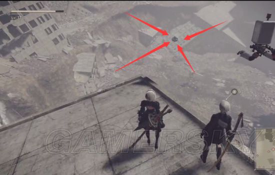 竞速比赛这里我说的是用2B小姐姐第三部分的玩法,第三部分的话目标比较远在对面楼,要用一下这个远跳的方法(这个方法在竞速的机器人那里第三个超远距离的时候快速从高处去低处的方法,很少用在其他地方更多用在竞速比赛第三部分,需要有高低差并且需要快速从高速到低处的),从高处快速去低的地方不拉着POD然后迅速飞去地面的。