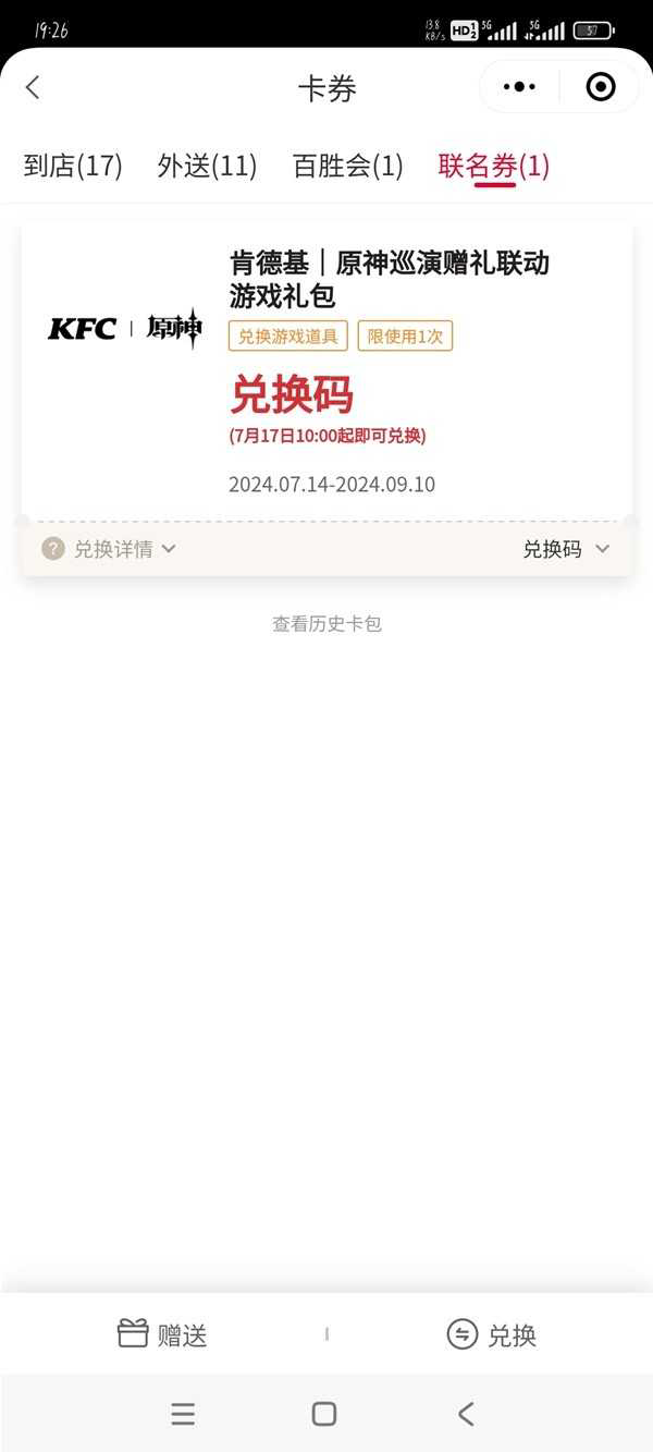 《原神》与KFC进行联动,玩家可以获得联动的游戏礼包,在7月17日可以查看兑换码进行兑换,那么兑换码在哪看呢?下面请看由“童年1”带来的《原神》KFC联动兑换码查看方法,希望对大家有用。