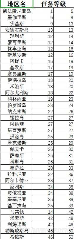 因为游戏自动等级跟随,地图推荐等级也会随着改变。有些人喜欢按顺序做任务或看剧情,可以参考这个表。