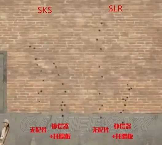 以上是助手哥测试的两把枪弹道图片,分别是没有配件的两把枪和装填了补偿器、托腮板弹道对比,助手哥个人觉得SLR是当前版本中受配件影响最大的武器,添加补偿和托腮板后弹道可以说整整优化了一倍。