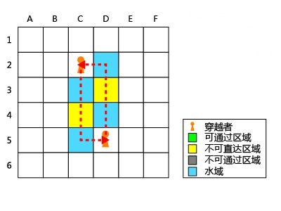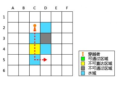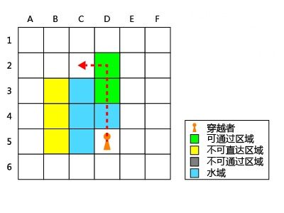 同时,当C4格为水域时,根据摇杆的方向,小人会跳向如图的三个位置