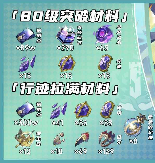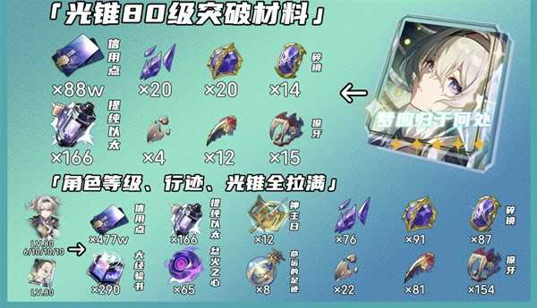 《崩坏星穹铁道》中流萤的突破材料大家都攒够了吗?不知道流萤需要什么材料的小伙伴快来看看由“几点结束看手机”为大家带来的《崩坏星穹铁道》流萤突破材料统计吧!希望可以帮助到大家。