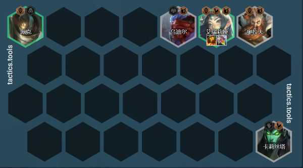 这里需要注意的是2星卡莉斯塔>2星剑魔>1星锐雯=1星亚索的,但是1星豹女>2星乌迪尔>1星盲僧,2星赛娜>1星派克,根据这个阵容思路选择合适的英雄搭配,走极限连胜流路线。