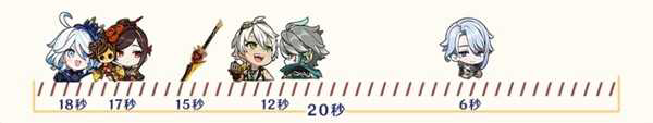 图例含义:芙宁娜—元素爆发BUFF持续时间;千织—元素战技人偶持续时间;有乐御簾切—额外伤害提升效果持续时间;班尼特—元素爆发领域持续时间;艾尔海森—三枚棱光镜持续时间;神里绫人—泷廻鉴花状态持续时间。
