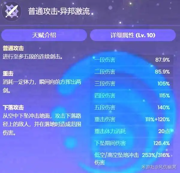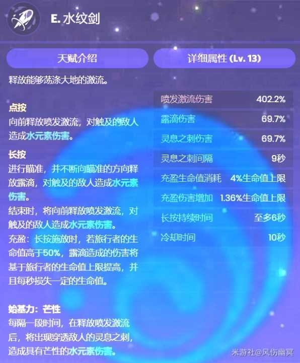 芒性:每隔一段时间,战技就有额外水伤攻击。