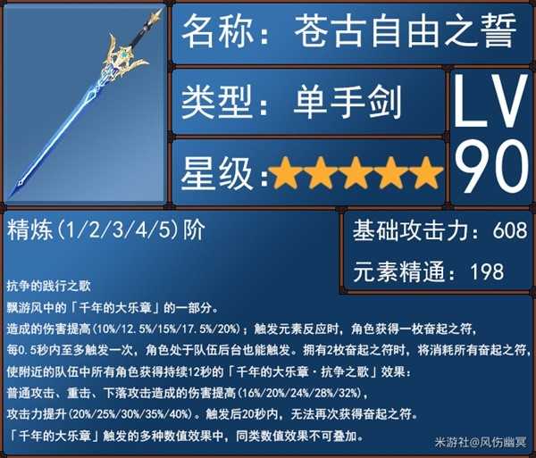 这把是很好的辅助剑,提升自己的元素伤,还提升队伍的普攻项和攻击力,是水主的毕业五星。