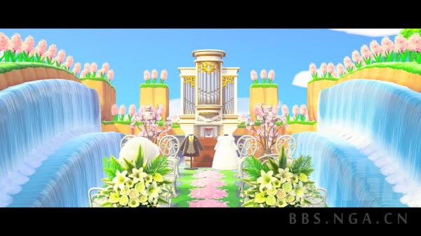 通过婚礼区,来到了下一个岔路口,分别是图书馆和花海。